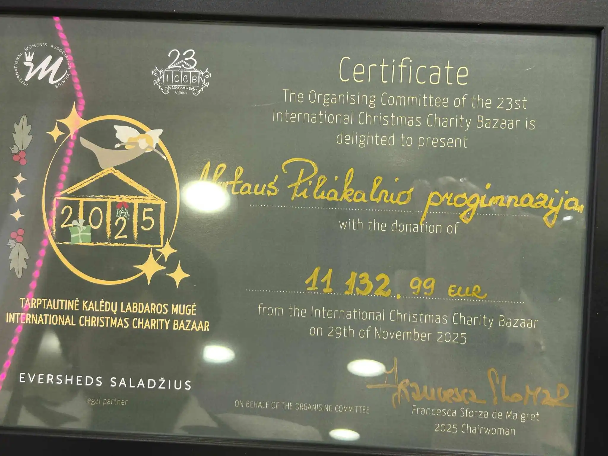 Mokyklos komanda turėjo garbę sudalyvauti labai gražiame renginyje - Tarptautinės Kalėdinės Labdaros Mugės2025 (ICCB) paramos perdavimo ceremonijoje.
